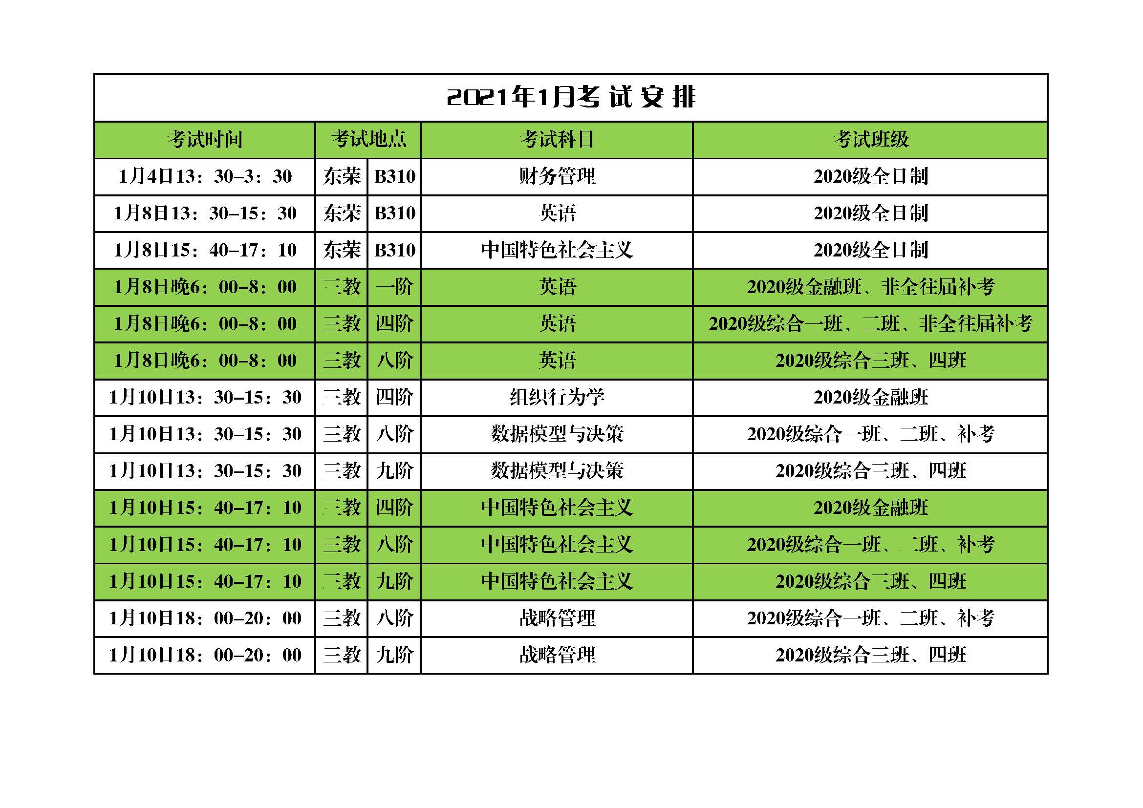 根据专业学位教学安排,现将对本学期专业学位研究生2021年1月考试时间安排公布如下: