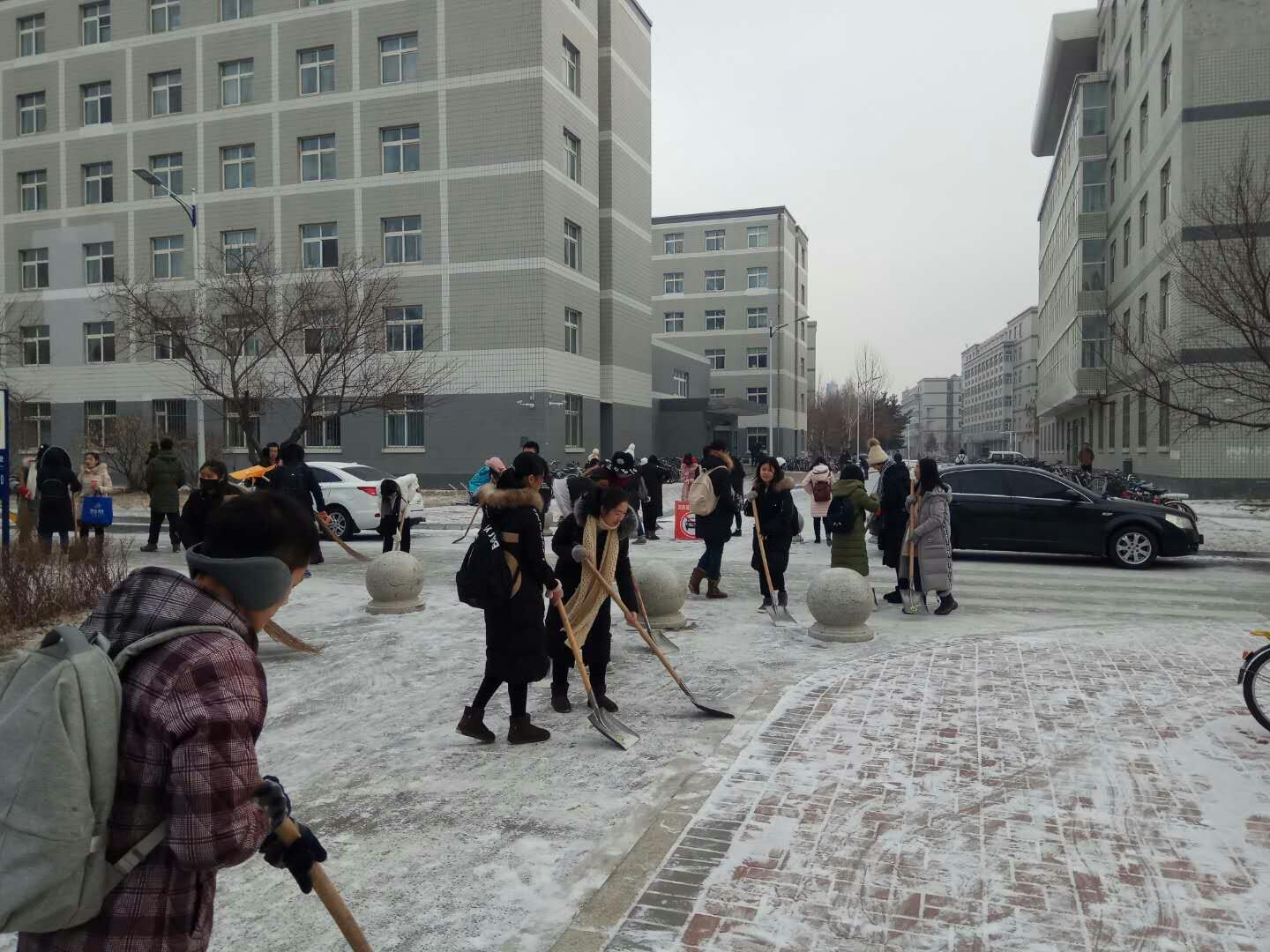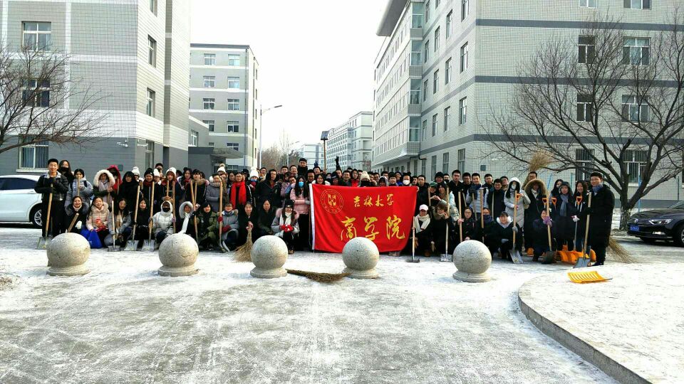 2017年12月9日上午8:30-9:30,新葡萄8883官网AMG党员先锋扫雪队在吉林大学前卫南区南苑九公寓前组织进行了扫雪工作。