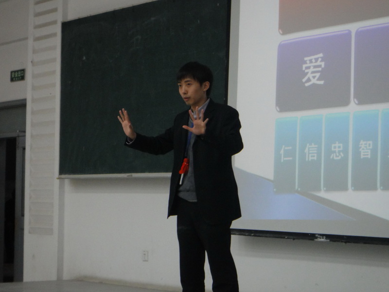 杨丰师兄对他的大学生涯总结成九个关键词:理想、勤奋、执着、善学、积极、幸运、专注、奉献和勇敢,然后他又分别从学习、竞赛、社团、考证、研究、实习、玩、工作等八个方面详细地描述了他的大学历程。谦卑的态度,幽默的语言,无不展示着他自信的风采。