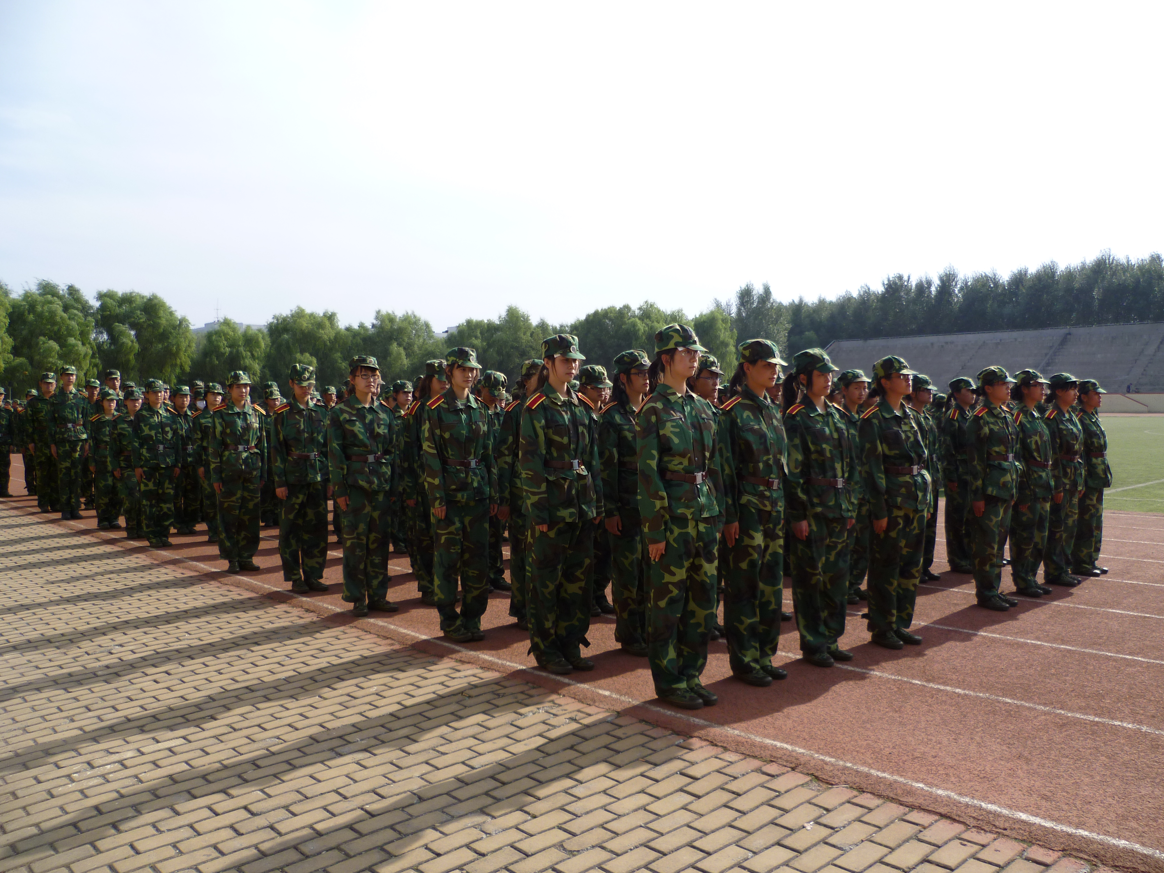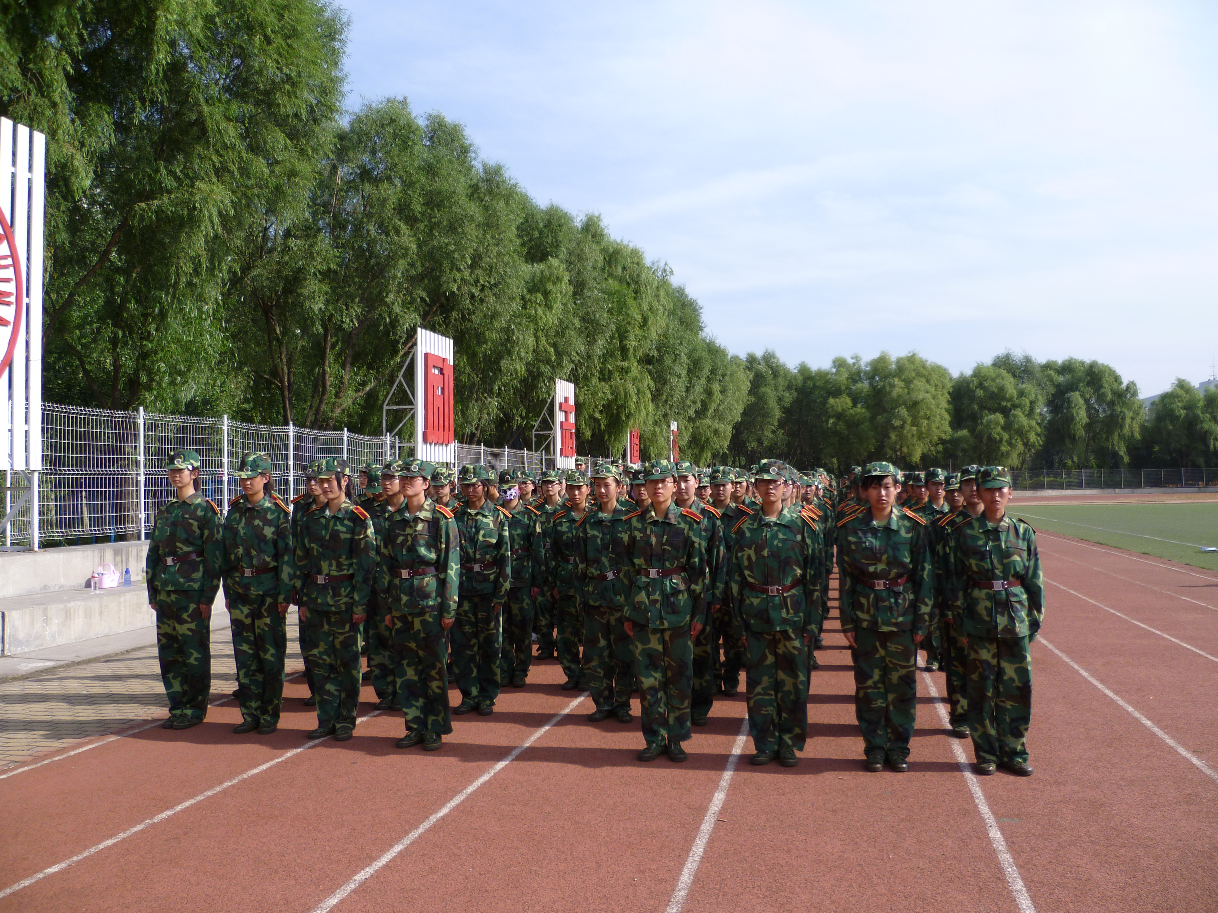 清晨,阳光刚刚照耀大地,训练场上已经被绿色覆盖,商院学的新生们时而整齐的站着笔直的军姿,时而有力的踏着正步,时而喊着响亮的口号,时而唱着激昂的军歌。